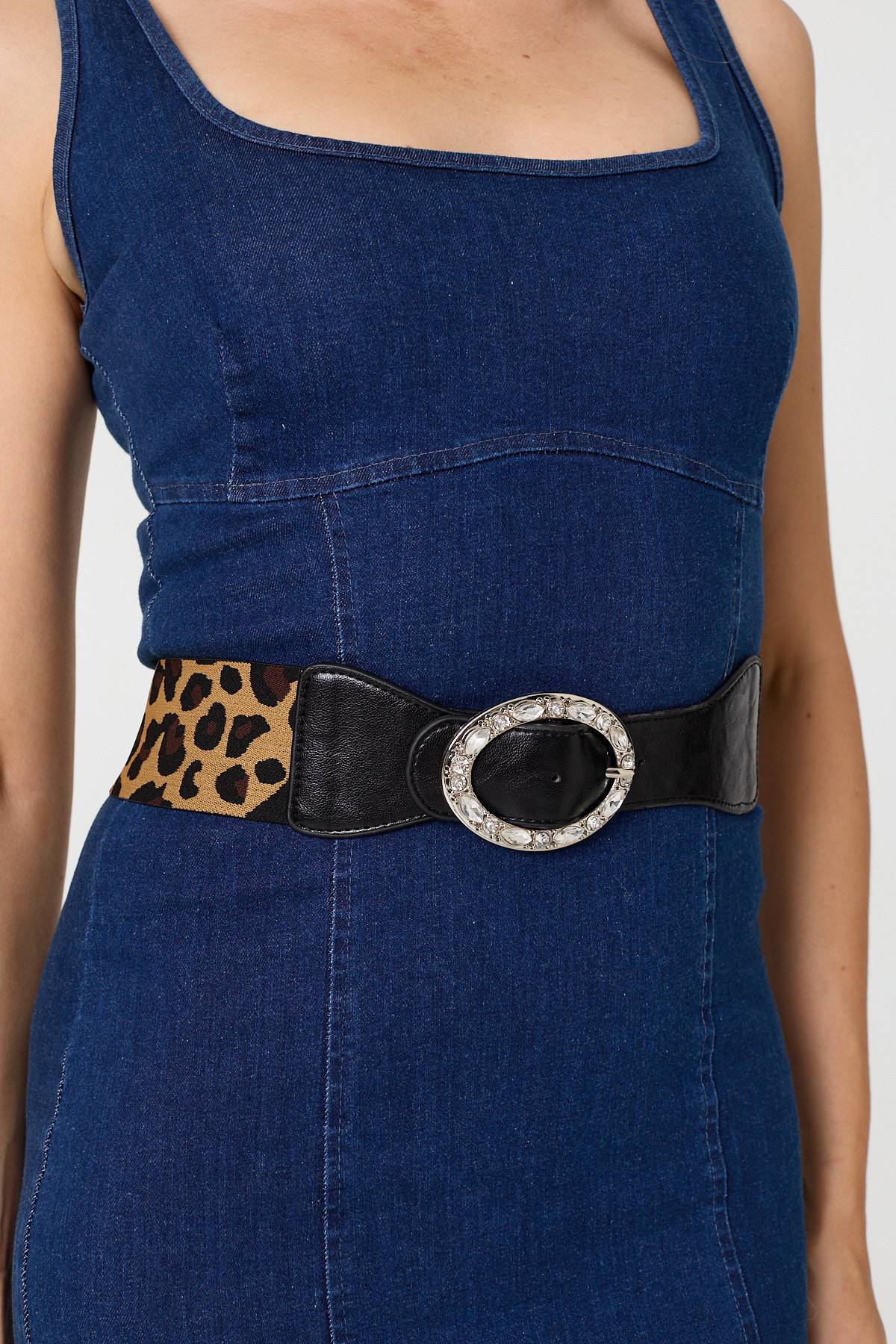 This eye-catching belt is finished with beautiful diamante details around the buckle to add extra sparkle to your outfit. It features a bold animal print, faux leather details and a classic fastener. Style around your waist for the finishing touch on an evening outfit.