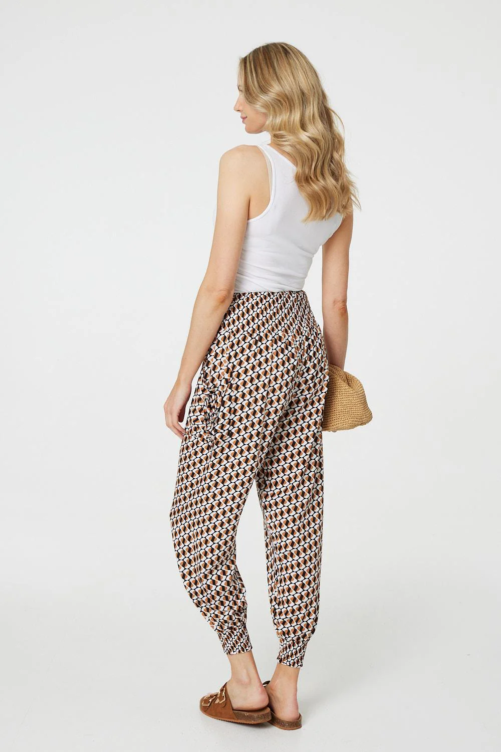 Geo Print High Waist Tassel Harem Pants