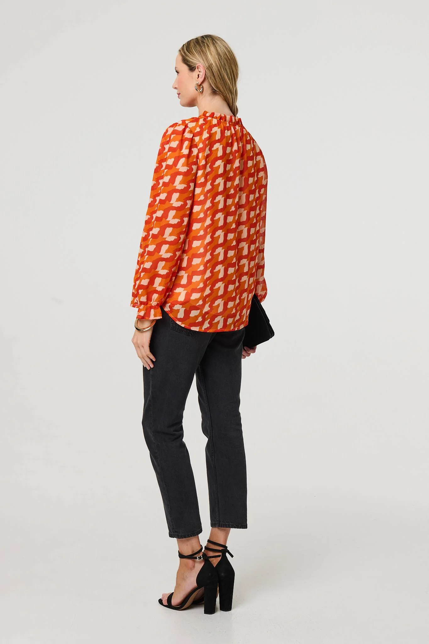 -70%Printed Tie Neck Long Sleeve Blouse—
