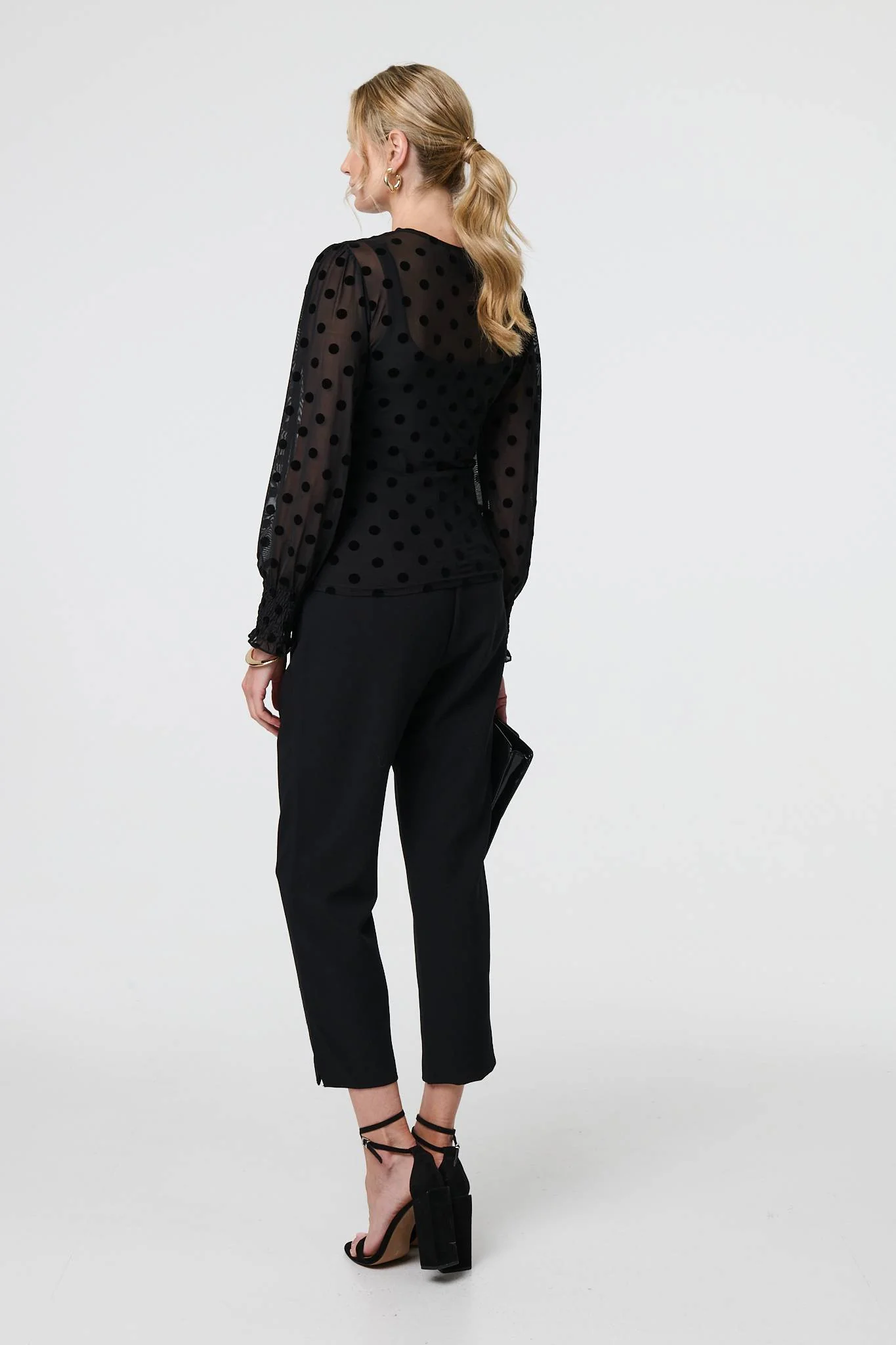 Polka Dot Sheer Mesh Puff Sleeve Blouse