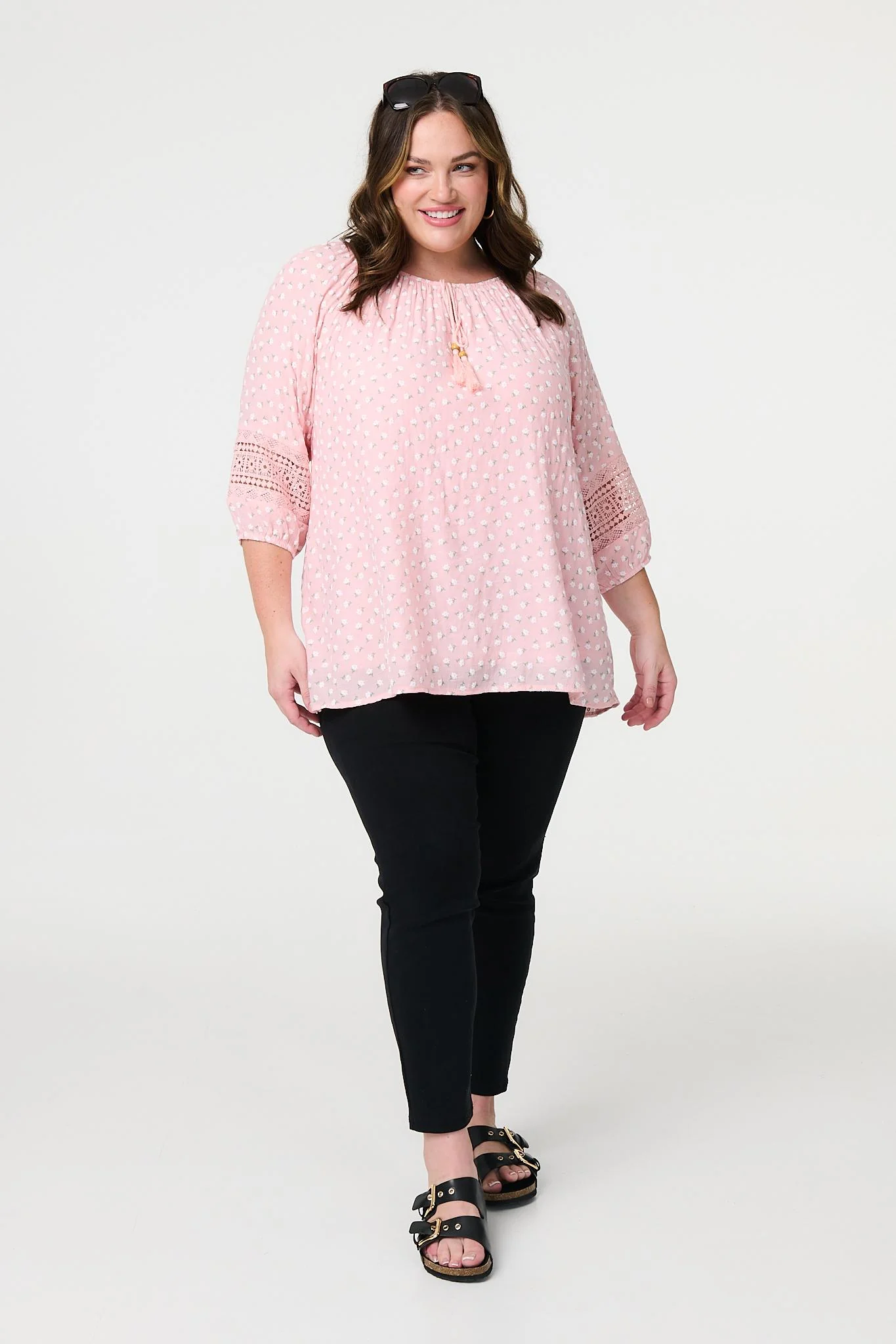 Keep your look laid-back during the summer with this relaxed blouse. It has a round keyhole neck with tassel details, creating a stylish bohemian look - as well as 3/4 lace sleeves, a relaxed fit and thigh length layered hem. Complete the look with blue jeans and sandals on a warm day.